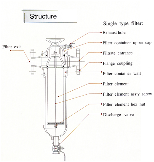 Using single type filter, dirty water flows from the outside of the filter element to the inside, therefore, the impurity will adhere to the surface of the filter element, and smooth enough to wash.